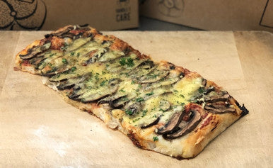Made from our ciabatta dough topped with our homemade tomato sauce and topped with fresh Parkvale Mushrooms, cheese and Italian herbs