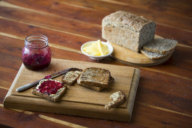 Nadaburg is our signature loaf made with an open texture and loaded with whole purple kibbled wheat. It is the perfect bread for toast or sandwiches. Try it toasted twice for that extra crunch. Made with no added fat or sugar.
